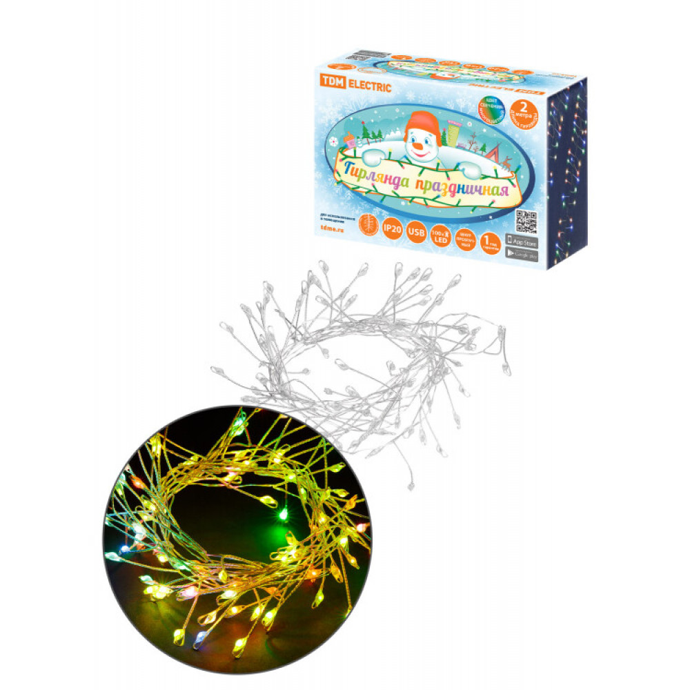 Гирлянда светодиодная "Самоцветы" 100LED, 2 м, RGB, USB, IP20, SQ0361-0199, Светильник декоративный