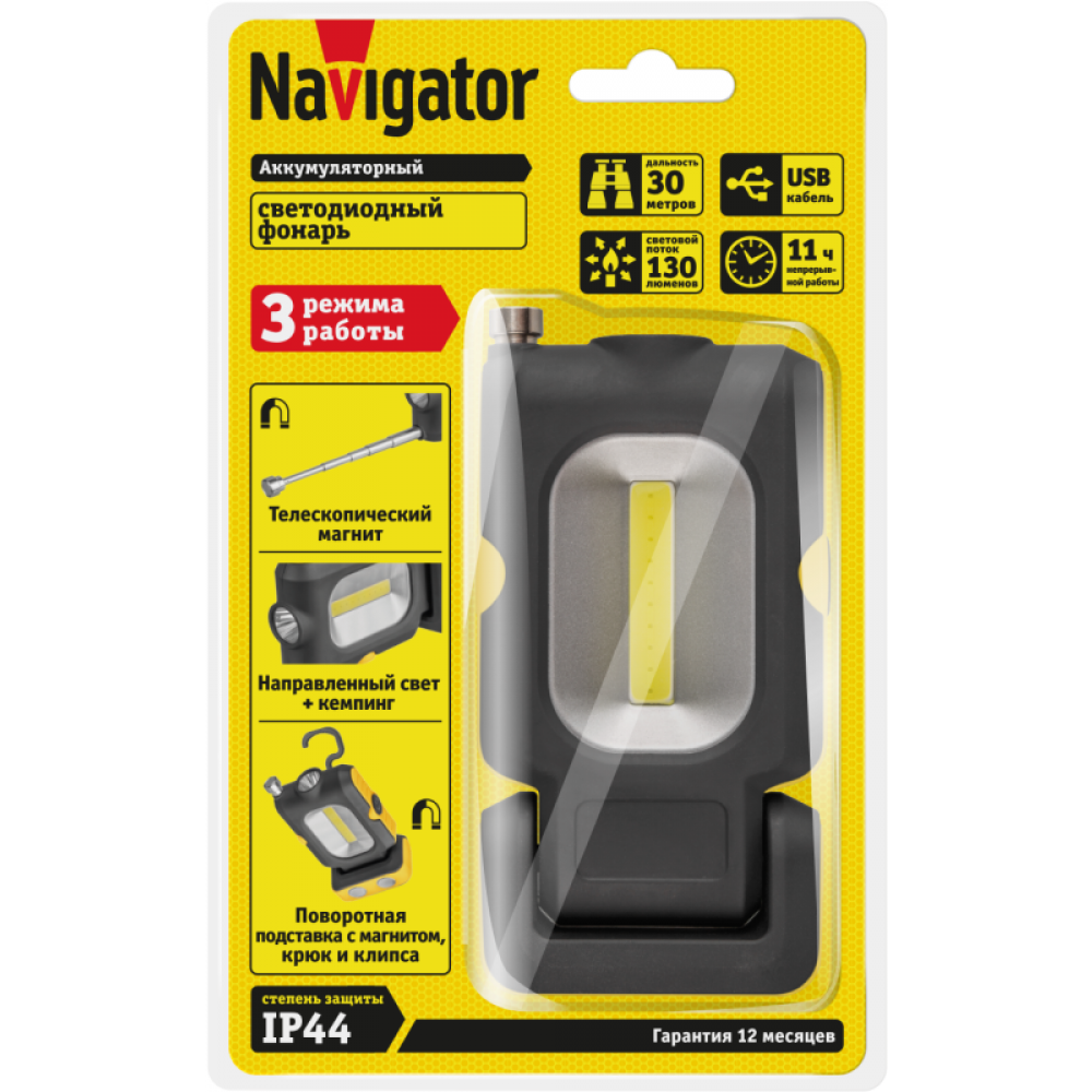 Доставка Фонарь аккумуляторный рабочий 14 083 NPT-W07-ACCU 1LED 1Вт + 1COB 3Вт аккум. 3.7В 14083