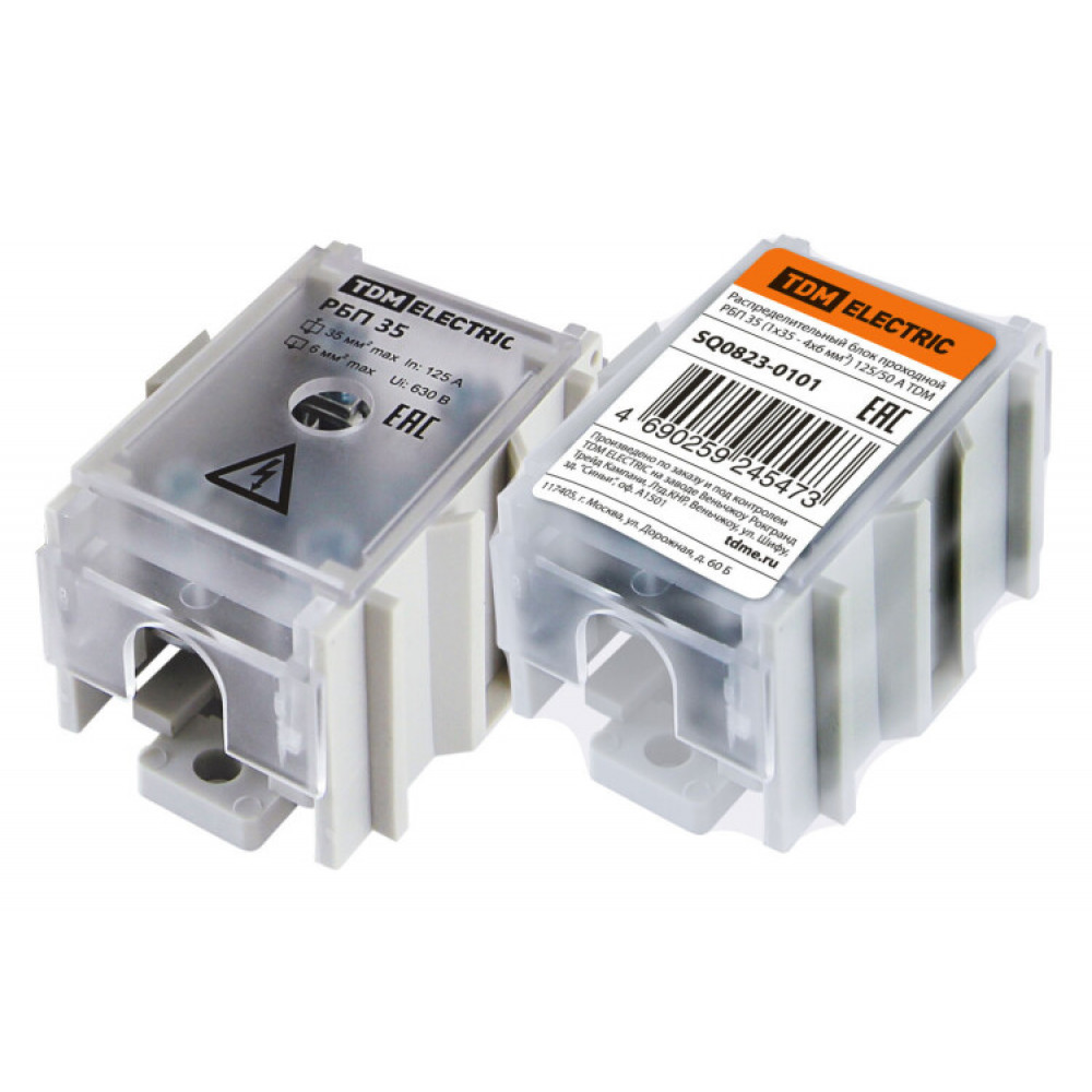 Описание Распределительный блок проходной РБП 35 (1х35 - 4х6 мм2) 125/50 А SQ0823-0101