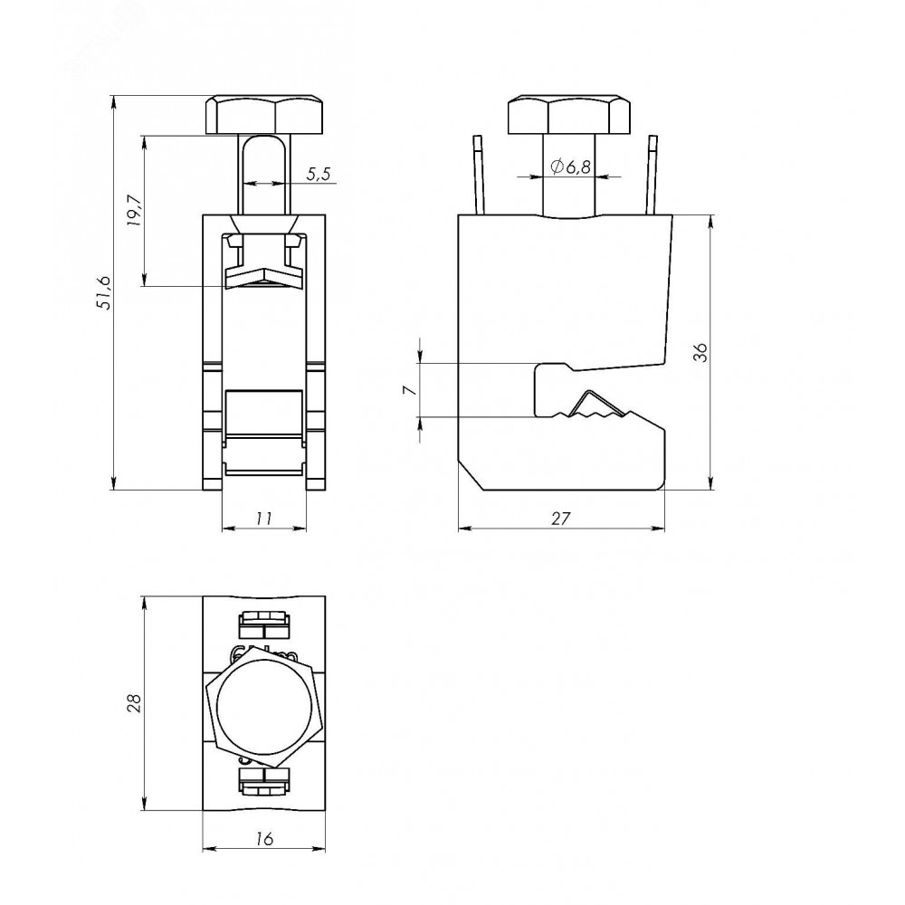 Шинная клемма для кабеля, сечение шины 5 мм, кабель 16-35 мм R5BC0535, Направляющая, держатель внутришкафной