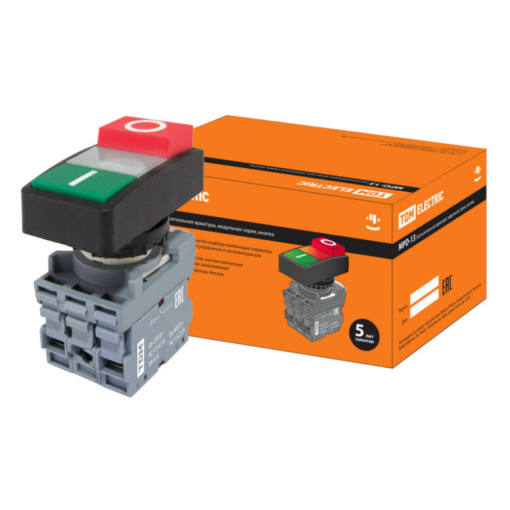 Доставка Кнопка двойная MPD13-11С (зеленая/красная-выступающая) (LED) d22мм/220В (I/O) линза прозрачная SQ0747-0038
