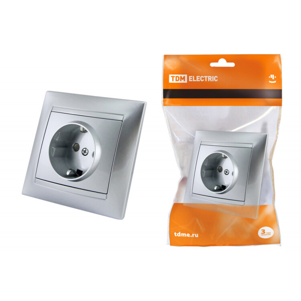 Розетка 2П+З 16А 250В с защ. шт. серебр. металлик "Лама" SQ1815-0211, Розетка скрытого монтажа
