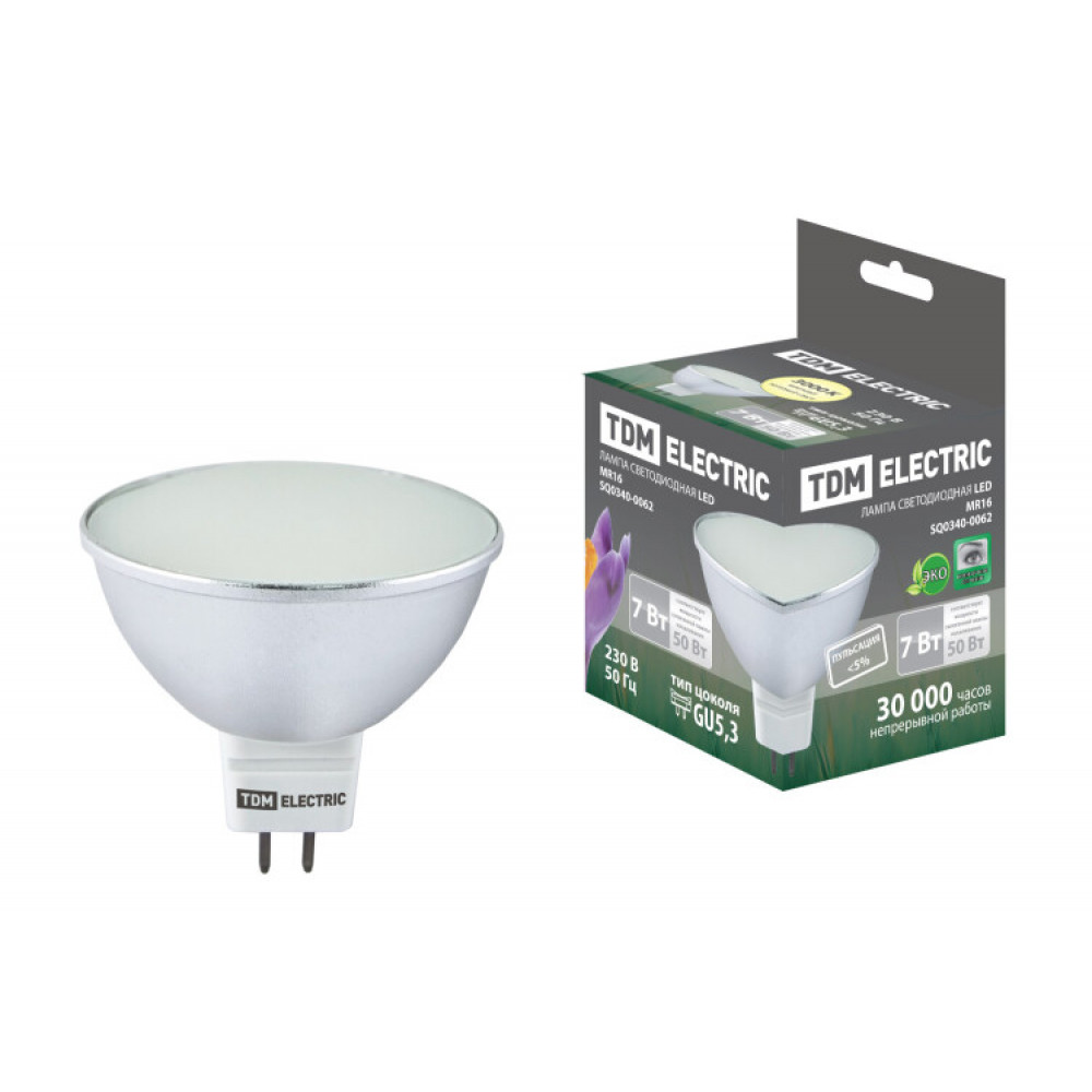 Описание Лампа светодиодная MR16-7 Вт-220 В -3000 К–GU 5,3 SMD (с матовым стеклом) SQ0340-0062