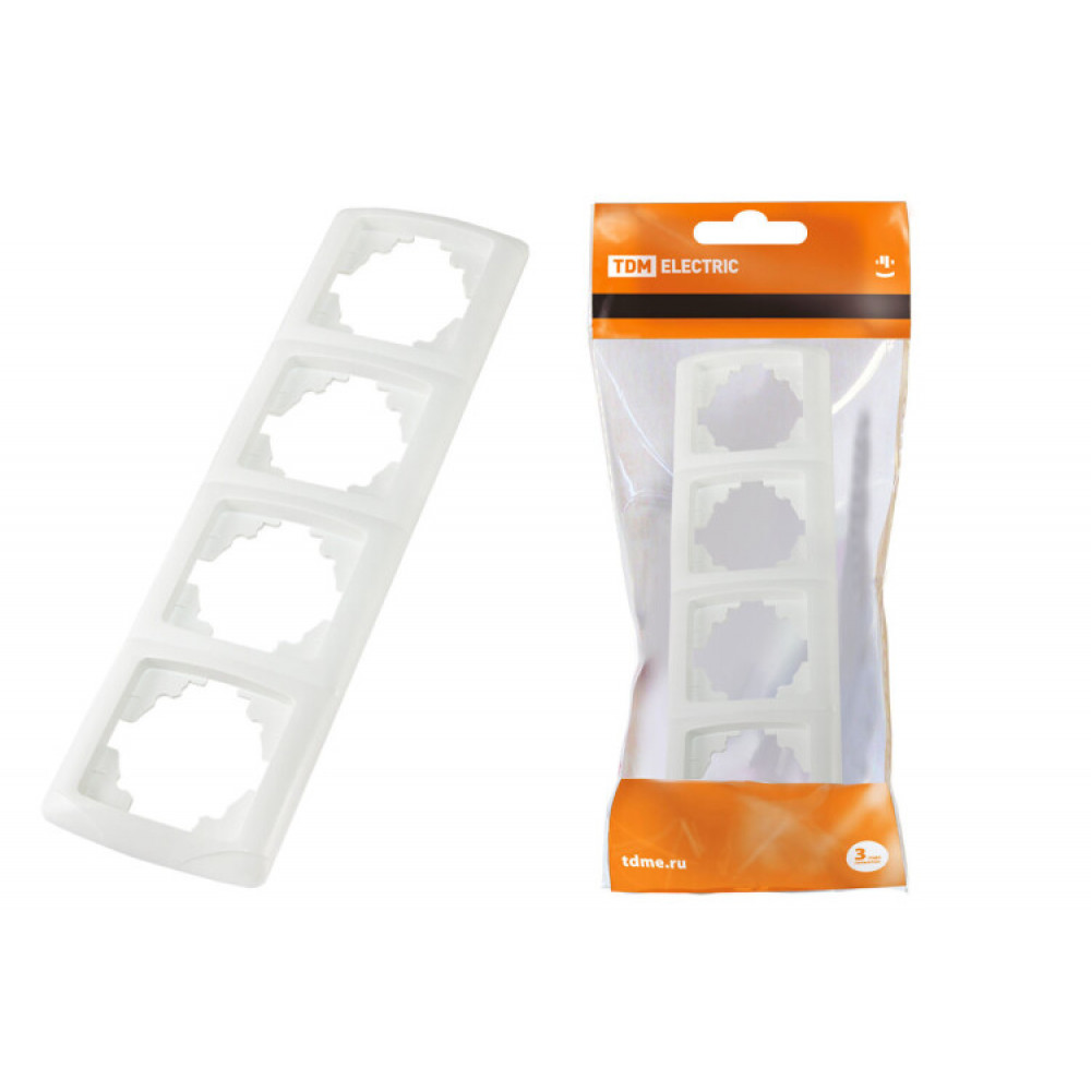 Рамка 4-х постовая вертикальная белая "Онега" SQ1805-0029, Аксессуар для скрытого монтажа