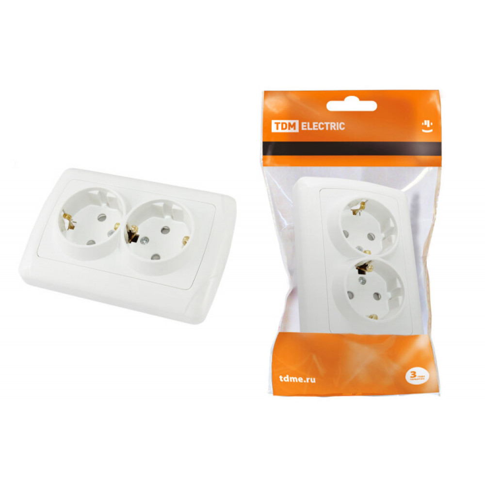 Доставка Розетка двойная 2П+З 16А 250В с защ. шт. белая "Онега" SQ1805-0013