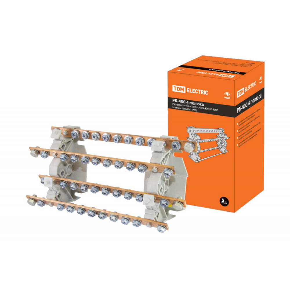 Распределительный блок РБ-400 4П 400А (4 шины 10xM6+1хM8) SQ0823-0010, Блок клеммный и нулевая шина