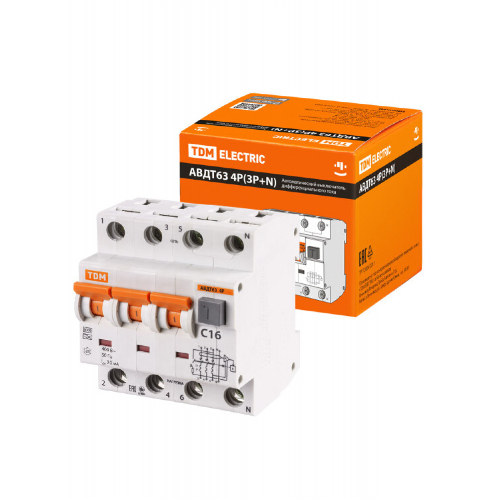 АВДТ 63 4P(3Р+N) C16 30мА 6кА тип А SQ0202-0017, Дифференциальная защита: УЗО, дифф блок