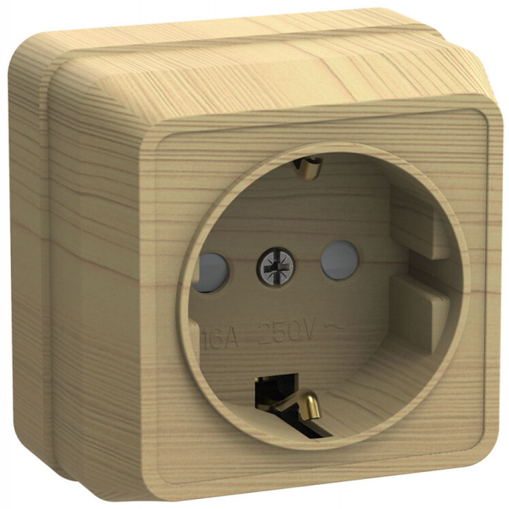 РСш20-3-ОС Розетка 1местн. с з/к с защ.штор. 16А откр.уст. ОКТАВА (сосна) ERO14-K03-16-DC, Розетка открытого монтажа