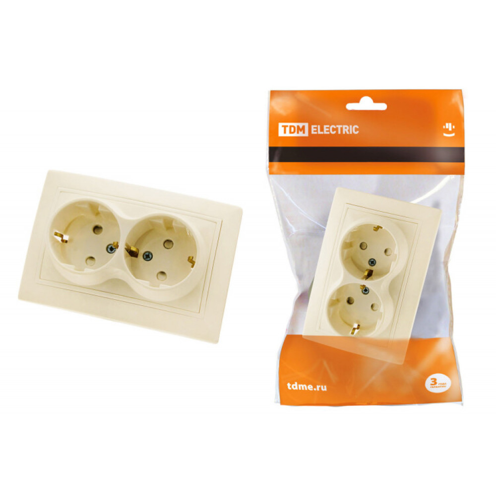 Доставка Розетка двойная 2П+З с защ. шт. 16А 250В сл. кость "Таймыр" SQ1814-0118