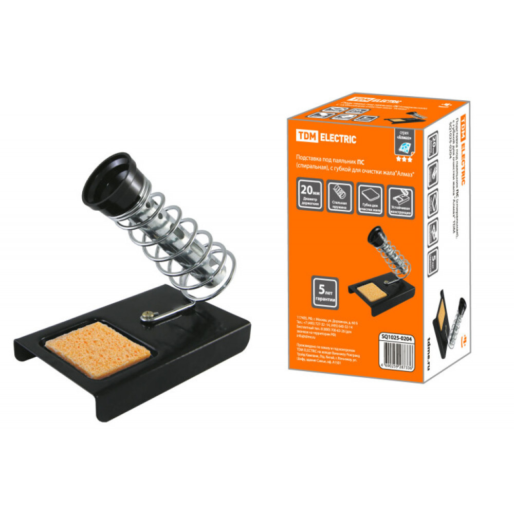 Подставка под паяльник ПС (спиральная), с губкой для очистки жала "Алмаз" SQ1025-0204, Подставка, кронштейн, крепление