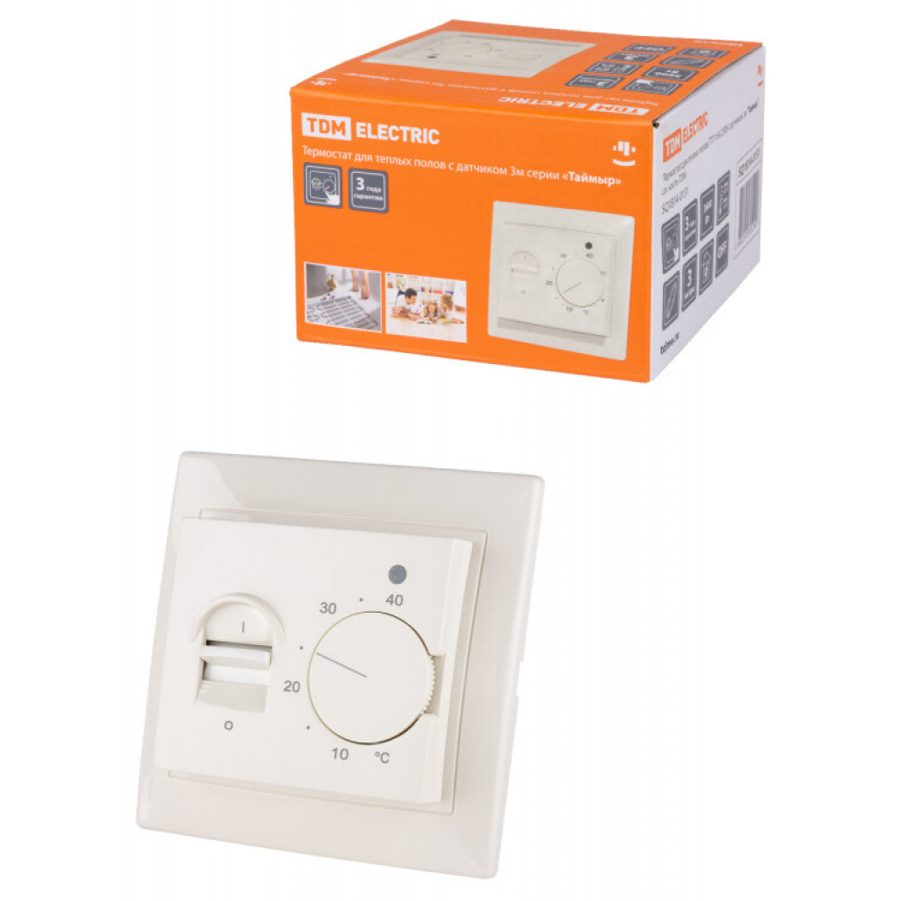Описание Термостат для теплых полов ТТП 16А 250В с датчиком 3м "Таймыр" сл. кость SQ1814-0131