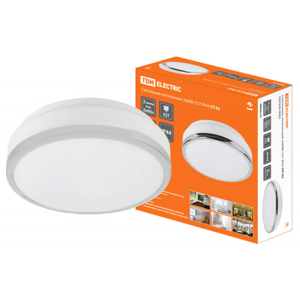 Описание Светильник потолочный 2х60Вт E27 IP 44 СП 03 SQ0346-0003