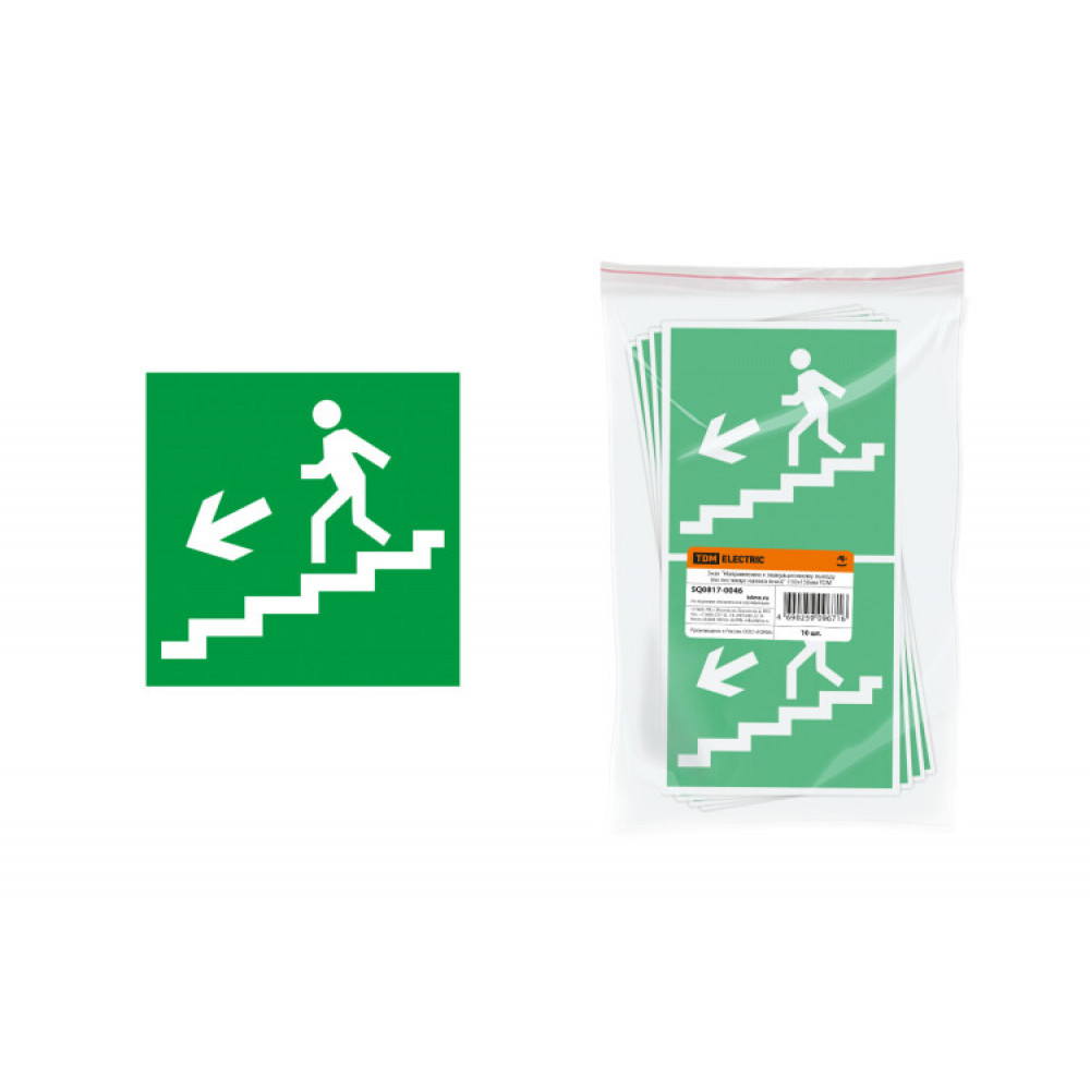 Описание Знак "Направление к эвакуационному выходу (по лестнице налево вниз)" 150х150мм SQ0817-0046