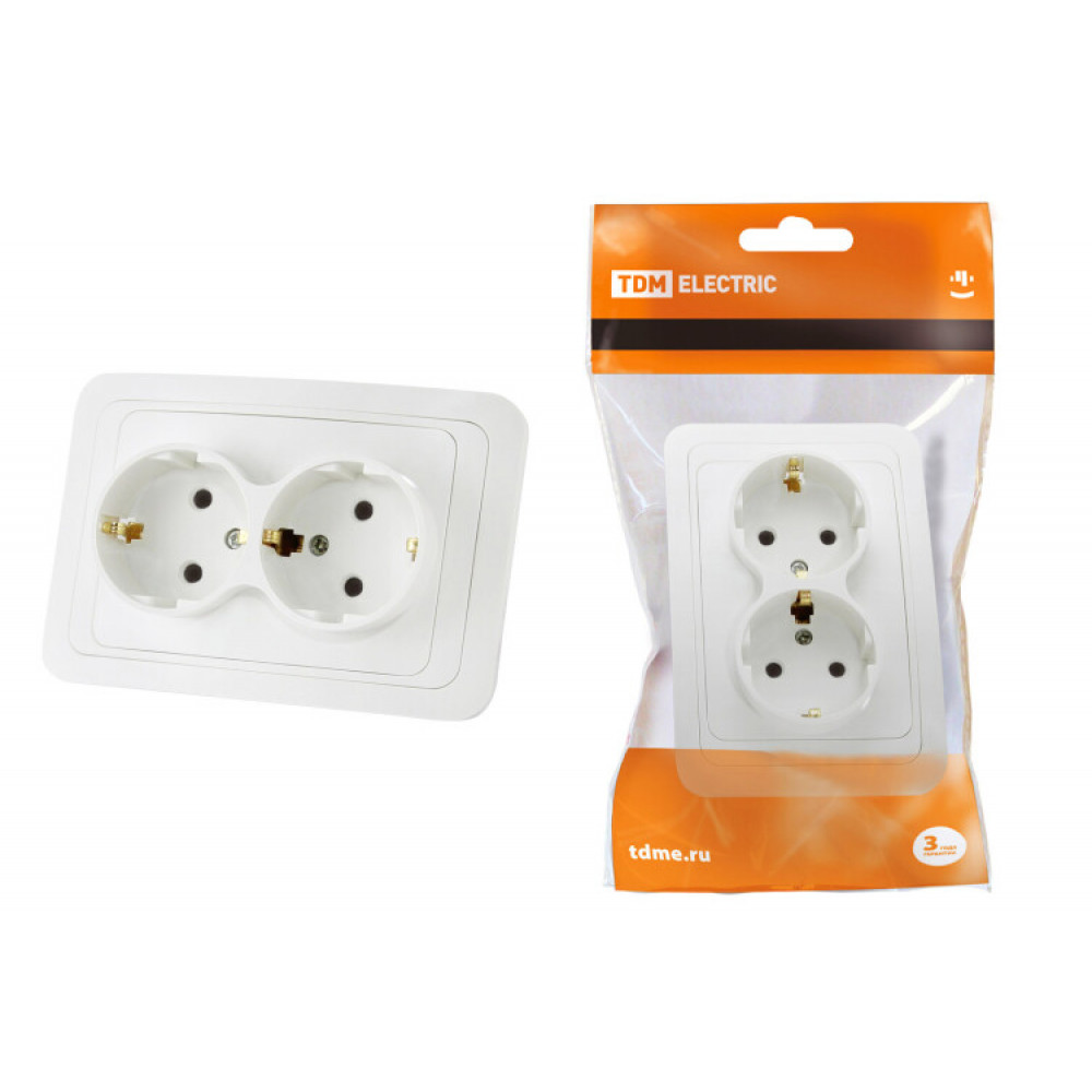 Описание Розетка двойная 2П+З 16А белая "Валдай" SQ1804-0010