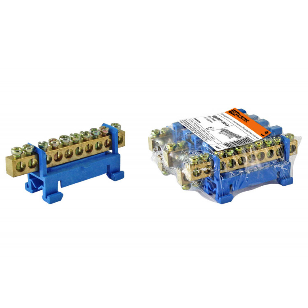 Шина "N" нулевая с изолятором на DIN-рейку 6x9мм стойка мал. 10 групп SQ0801-0013, Блок клеммный и нулевая шина
