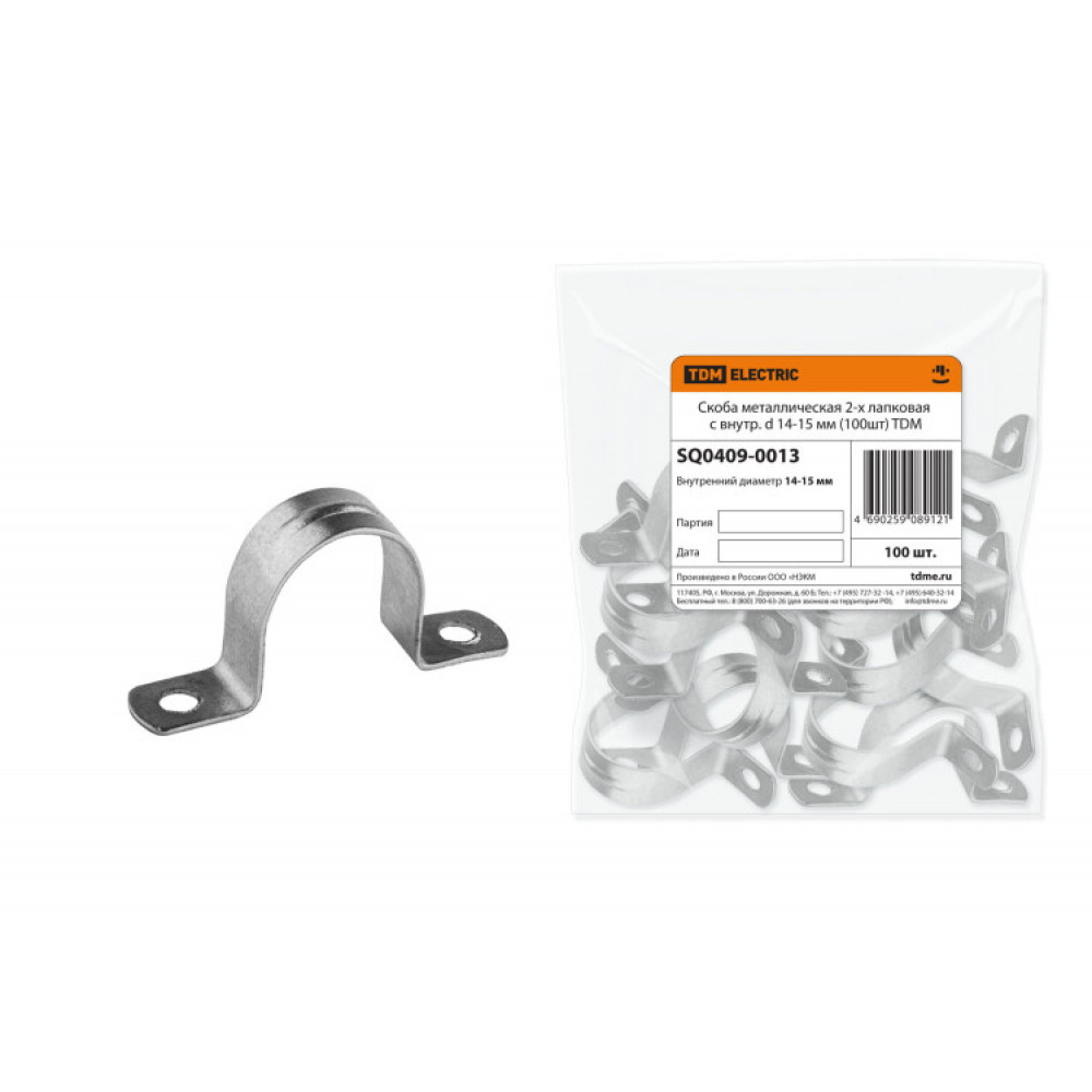 Описание Скоба металлическая 2-х лапковая с внутр. d 14-15 мм (100шт) SQ0409-0013