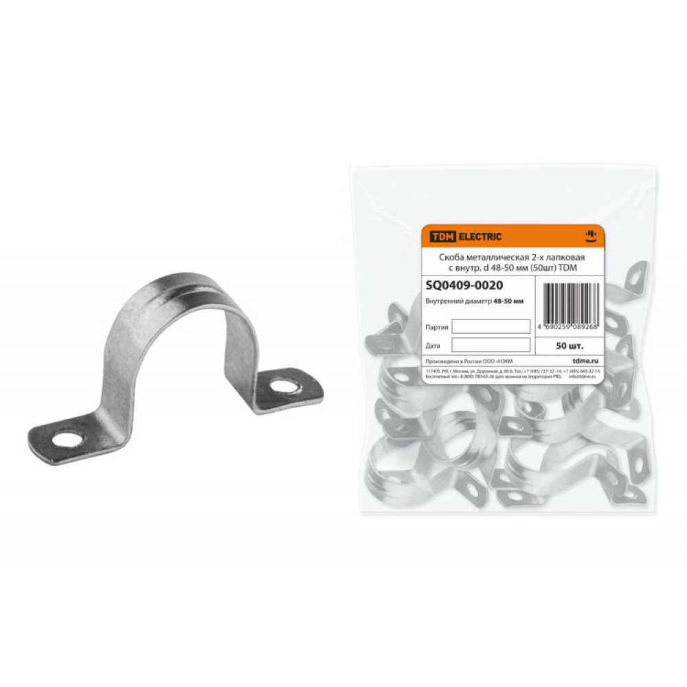 Описание Скоба металлическая 2-х лапковая с внутр. d 48-50 мм (50шт) SQ0409-0020