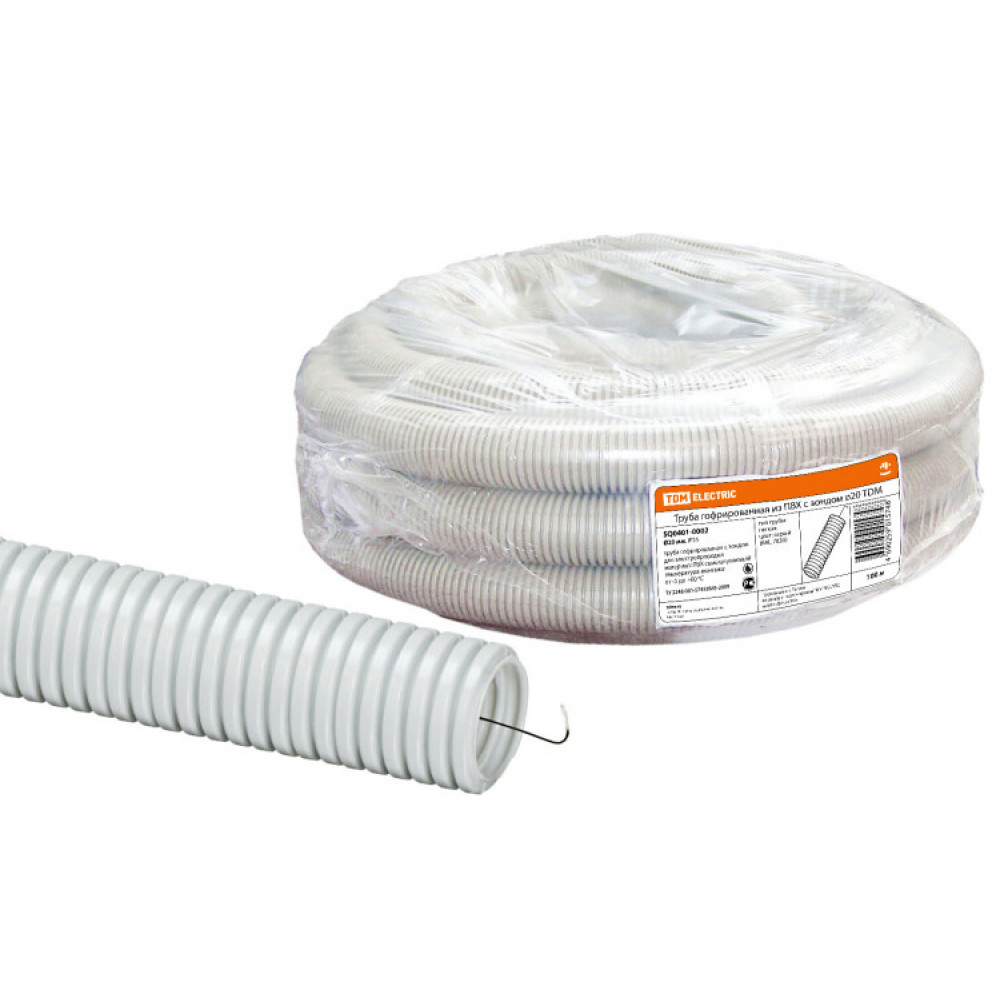 Труба гофрированная ПВХ d 20 с зондом (100 м) легкая SQ0401-0002, Труба и короб для прокладки кабеля
