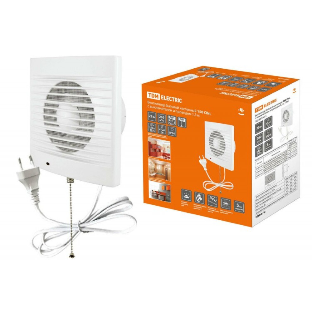 Вентилятор бытовой настенный 150 СВп, с выключателем и проводом 1,3 м, SQ1807-0015, Система вентиляционная