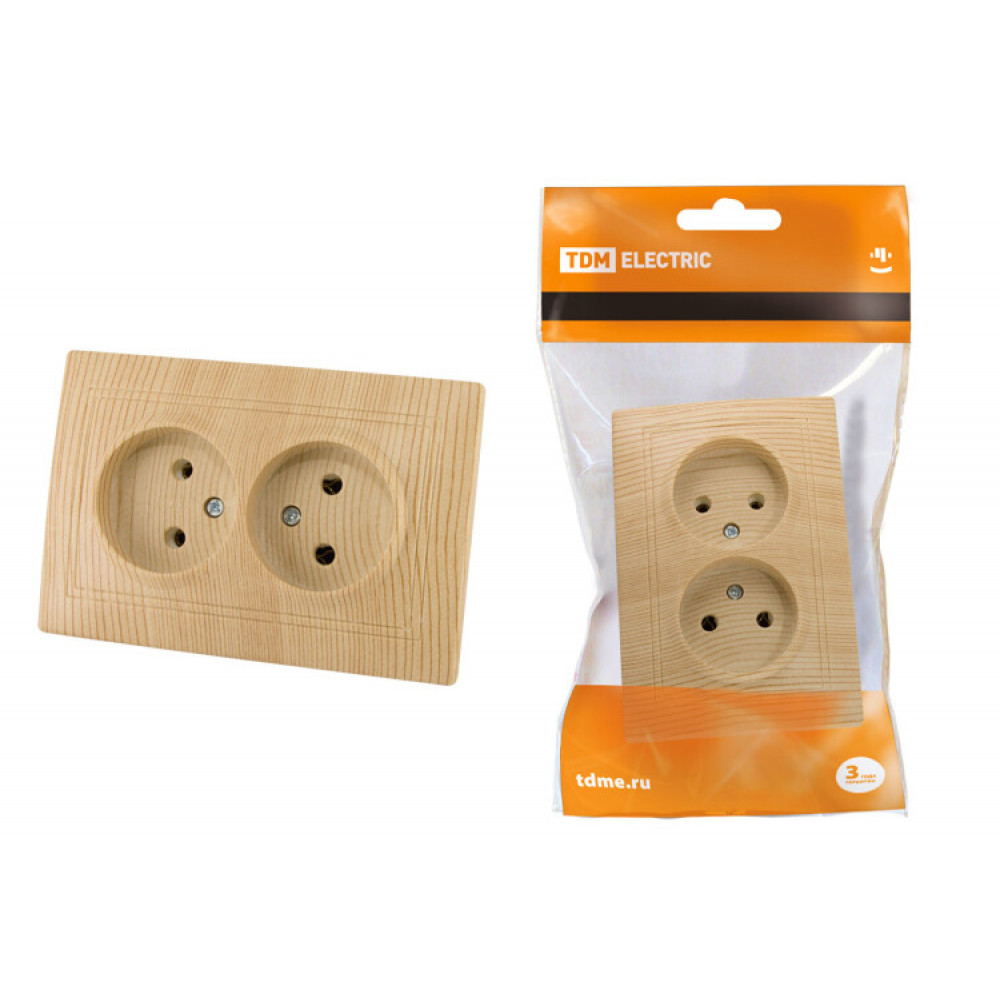 Описание Розетка двойная 2П 10А 250В "ЭКО" (сосна) "Таймыр" SQ1814-0213