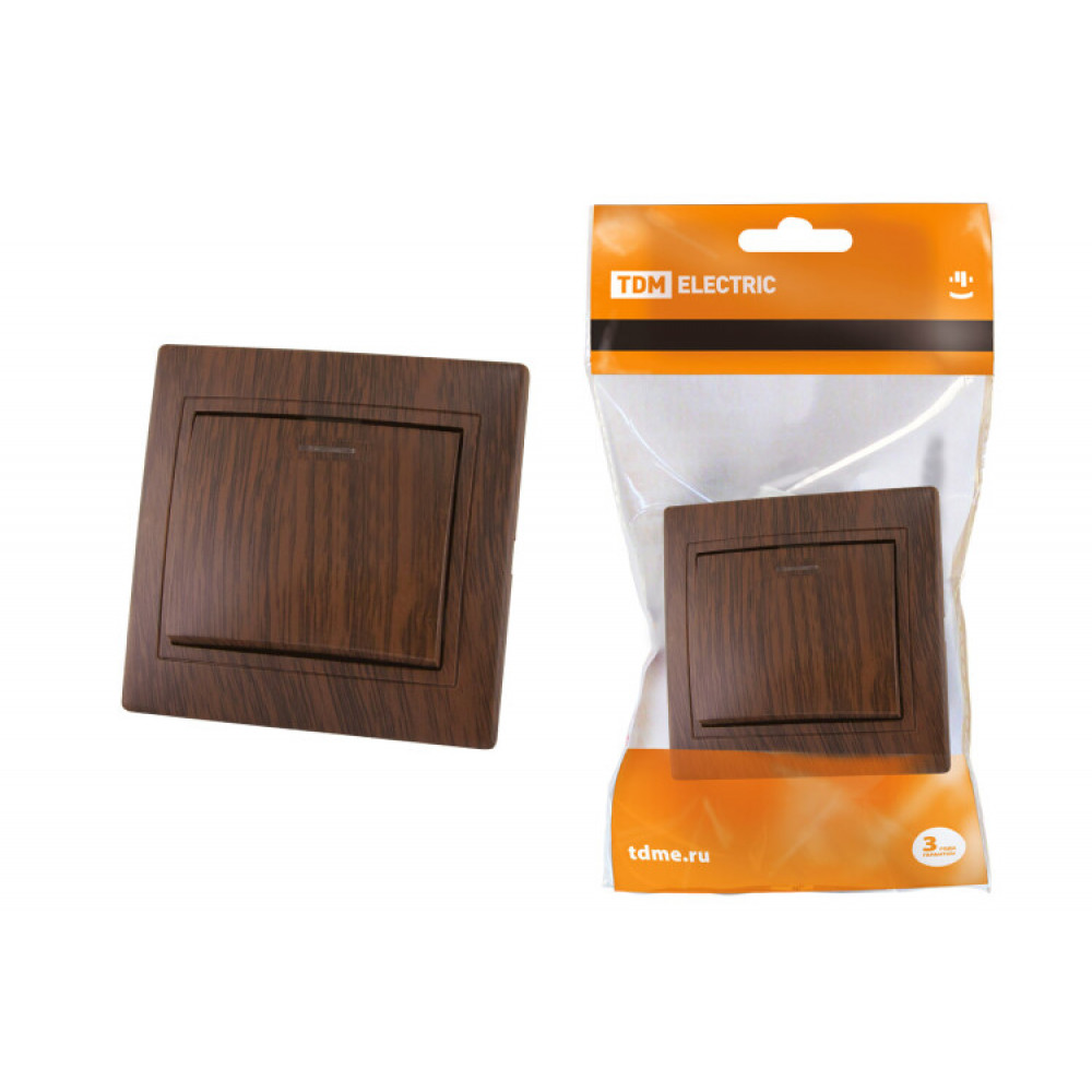 Описание Выключатель 1 кл. с подсветкой 10А "ЭКО" (бук) "Таймыр" SQ1814-0304