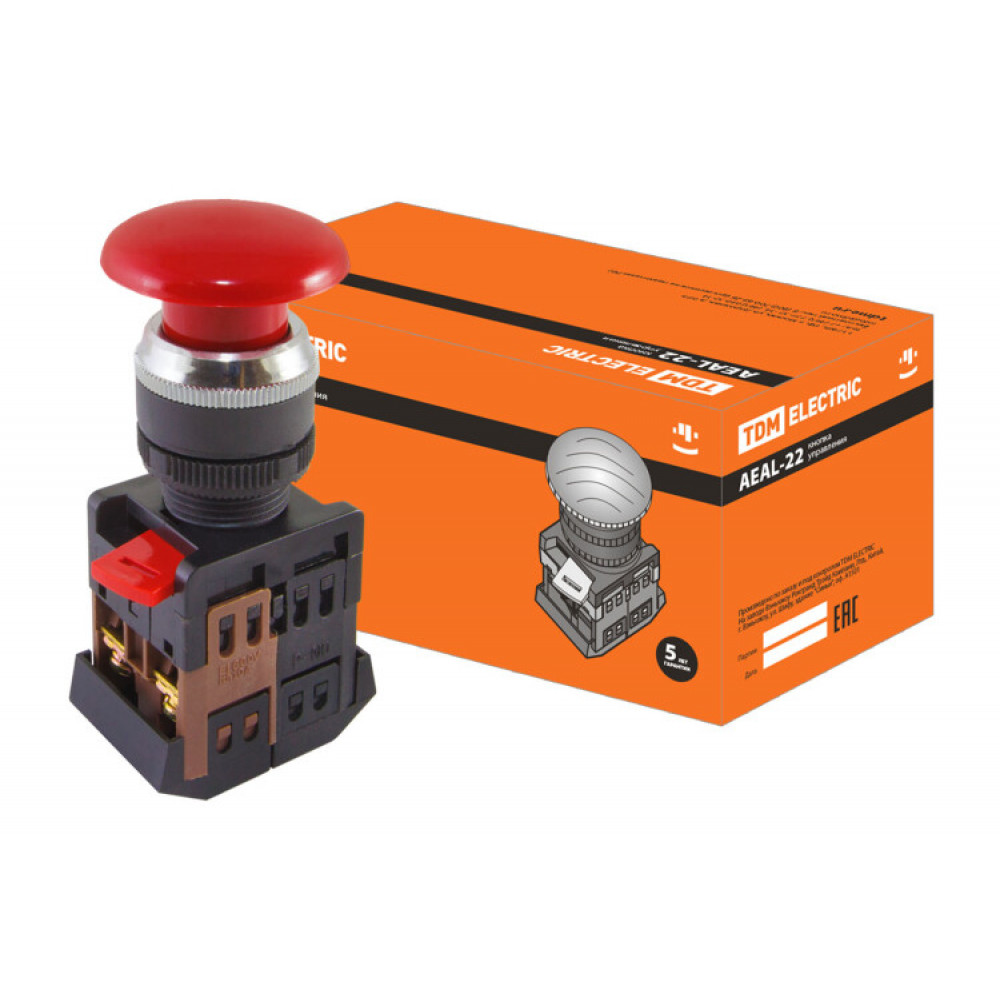 Кнопка AEAL-22 "Грибок"с фиксацией красный d22мм 230В 1з+1р SQ0704-0020, Кнопка