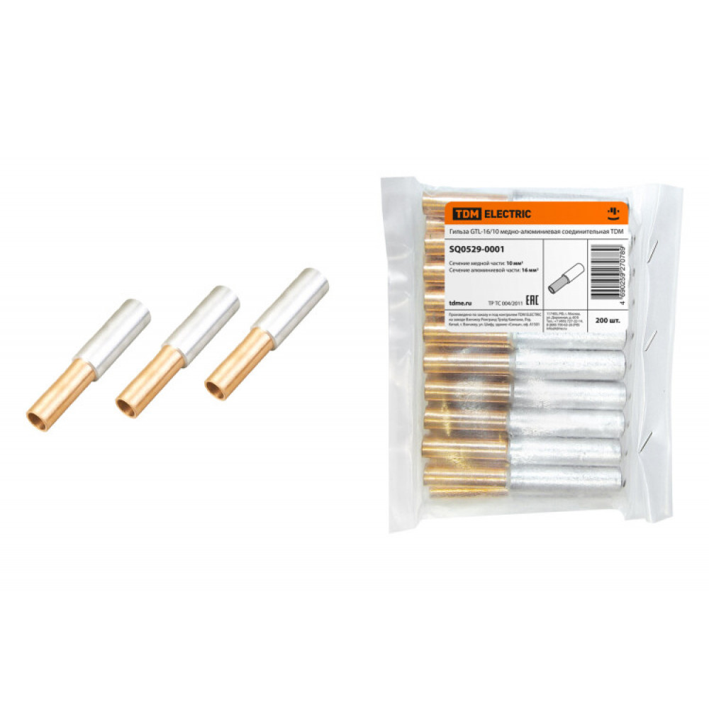 Гильза GTL-16/10 медно-алюминиевая соединительная SQ0529-0001, Наконечник, гильза