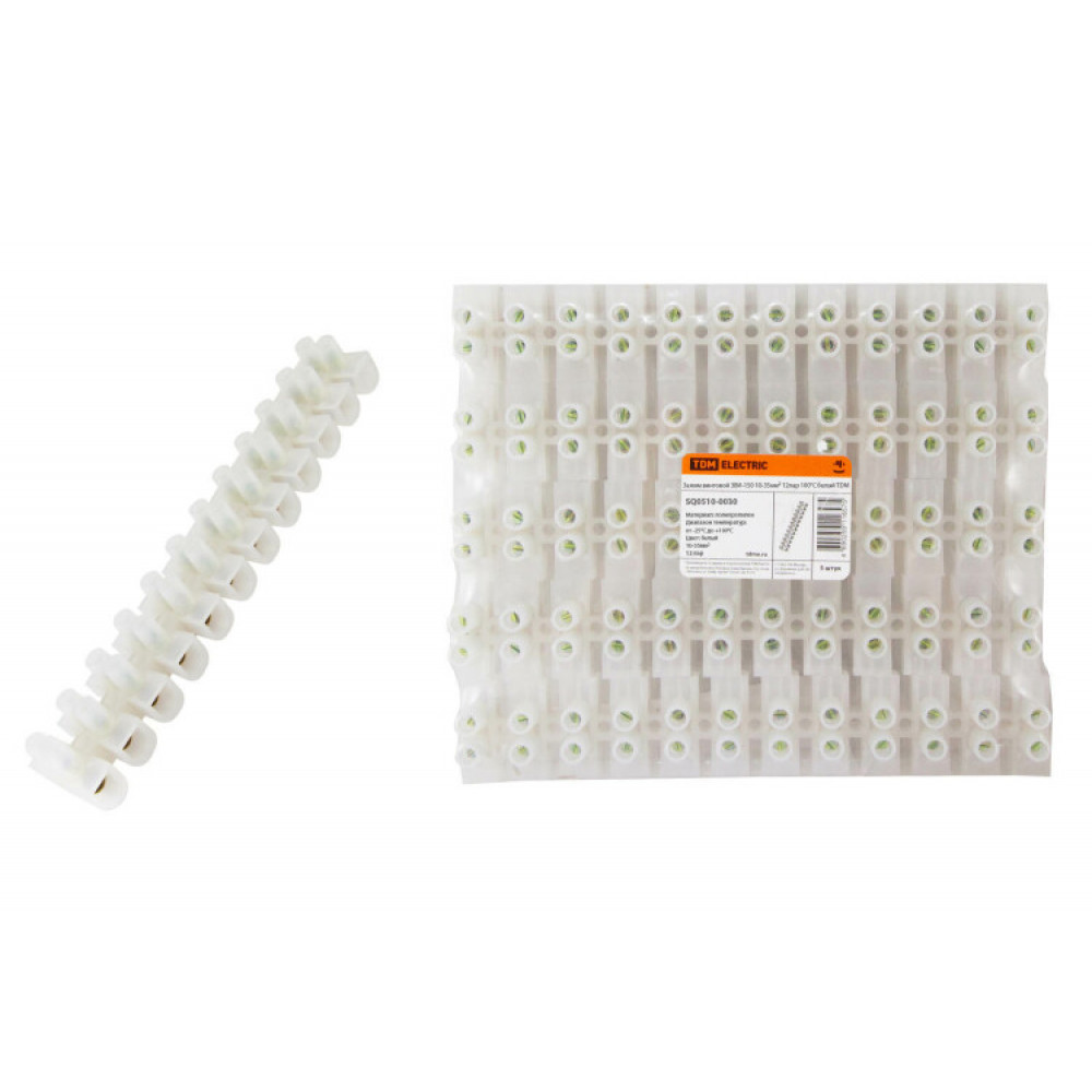 Описание Зажим винтовой ЗВИ-150 полипропилен 10-35мм2 12пар 100°С белый SQ0510-0030