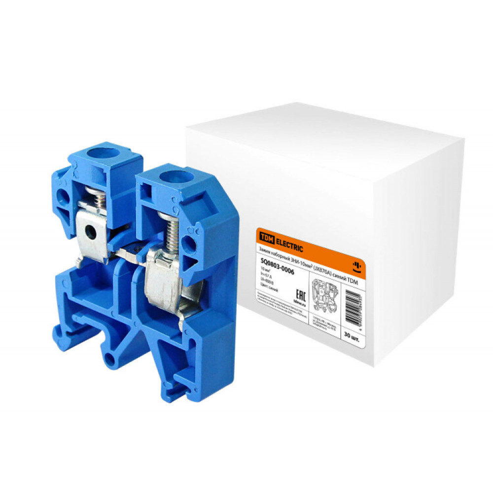 Зажим наборный ЗНИ-10мм2 (JXB70А) синий SQ0803-0006, Клемма на DIN-рейку