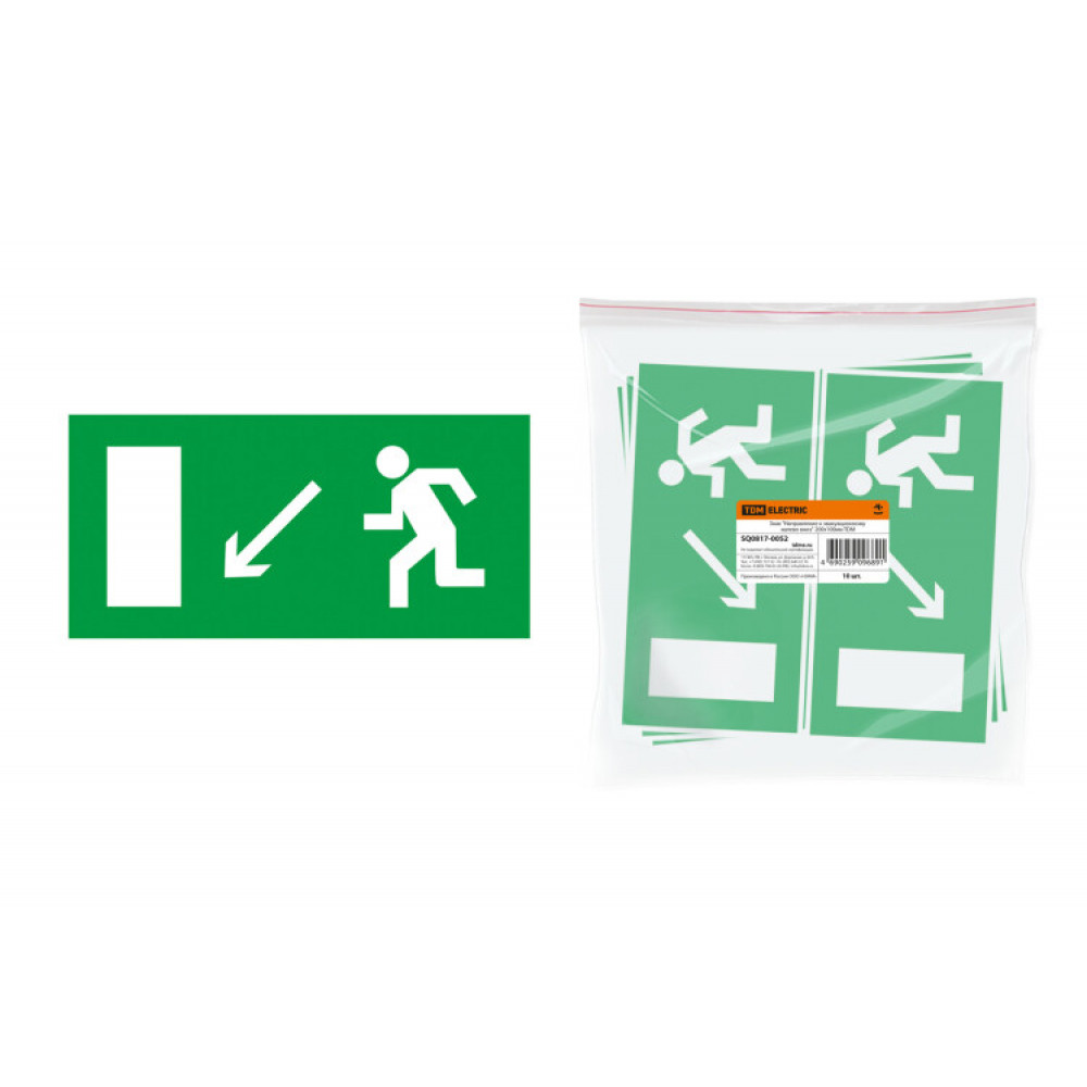 Описание Знак "Направление к эвакуационному выходу налево вниз" 200х100мм SQ0817-0052