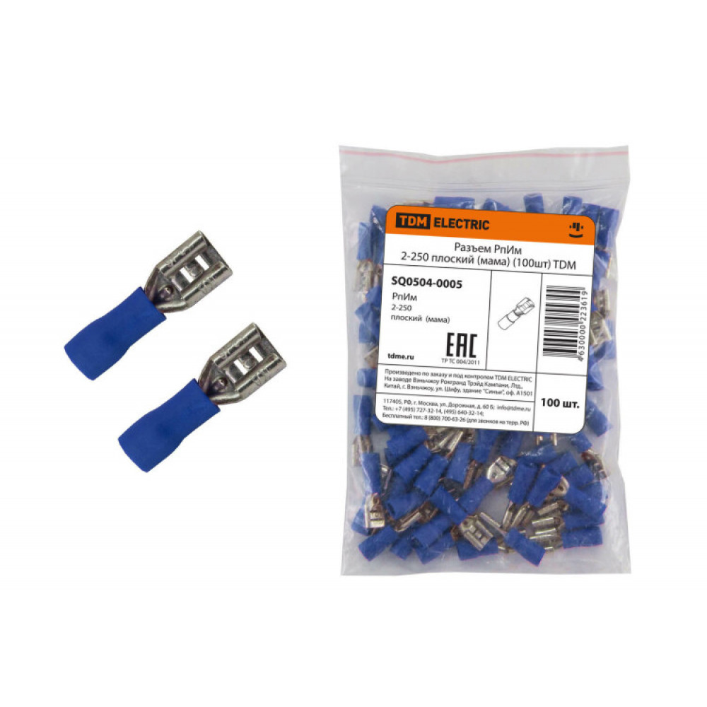 Доставка Разъем РпИм 2-250 плоский (мама) (100шт) SQ0504-0005