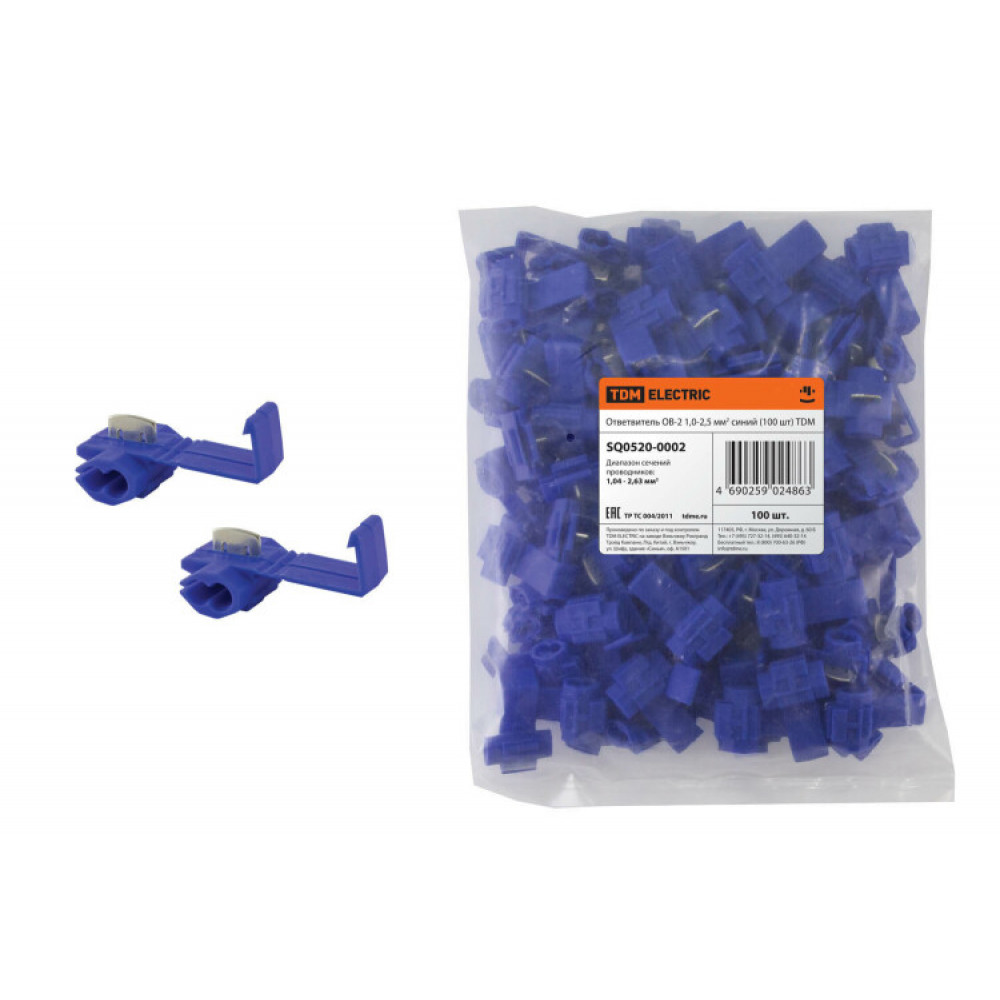 Доставка Ответвитель ОВ-2 1,0-2,5 мм2 синий (100 шт) SQ0520-0002