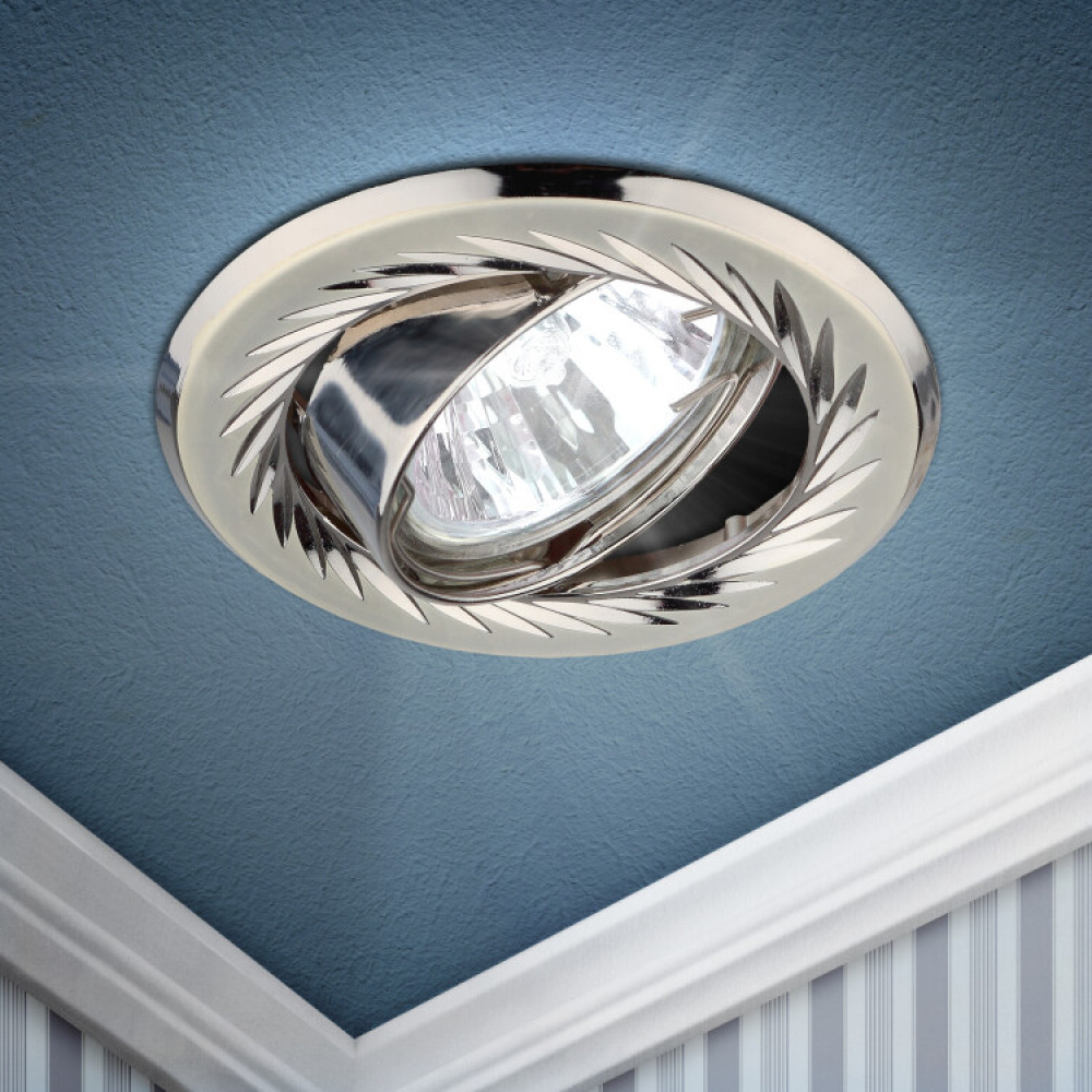 Описание KL6A PS/N Светильник литой пов. с гравировкой по кругу MR16,12V/220V, 50W перламутровое серебро C0043676