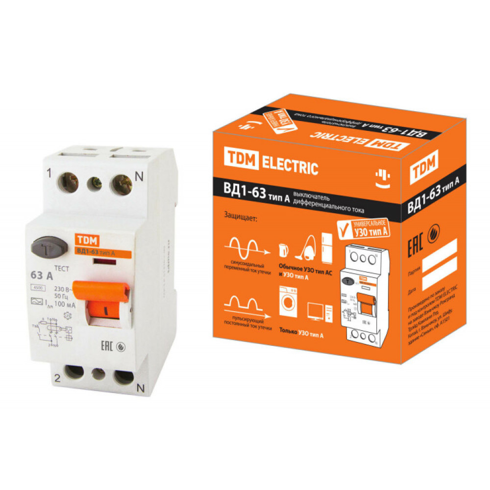 Описание УЗО ВД1-63 2Р 63А 100мА тип А SQ0203-0081