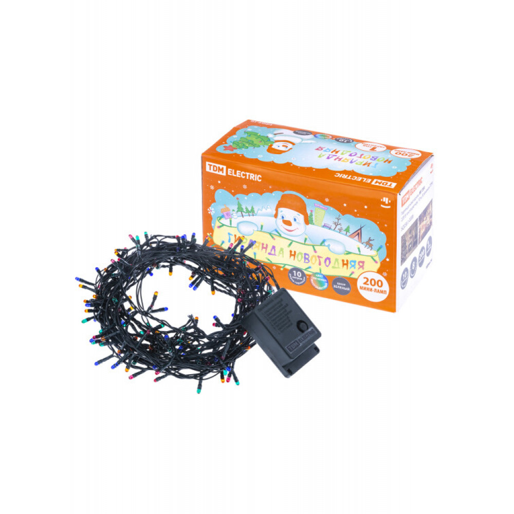 Описание Гирлянда новогодняя, МГ 200, 220 В, многоцветная, 10 м, 8 режимов SQ0361-0006