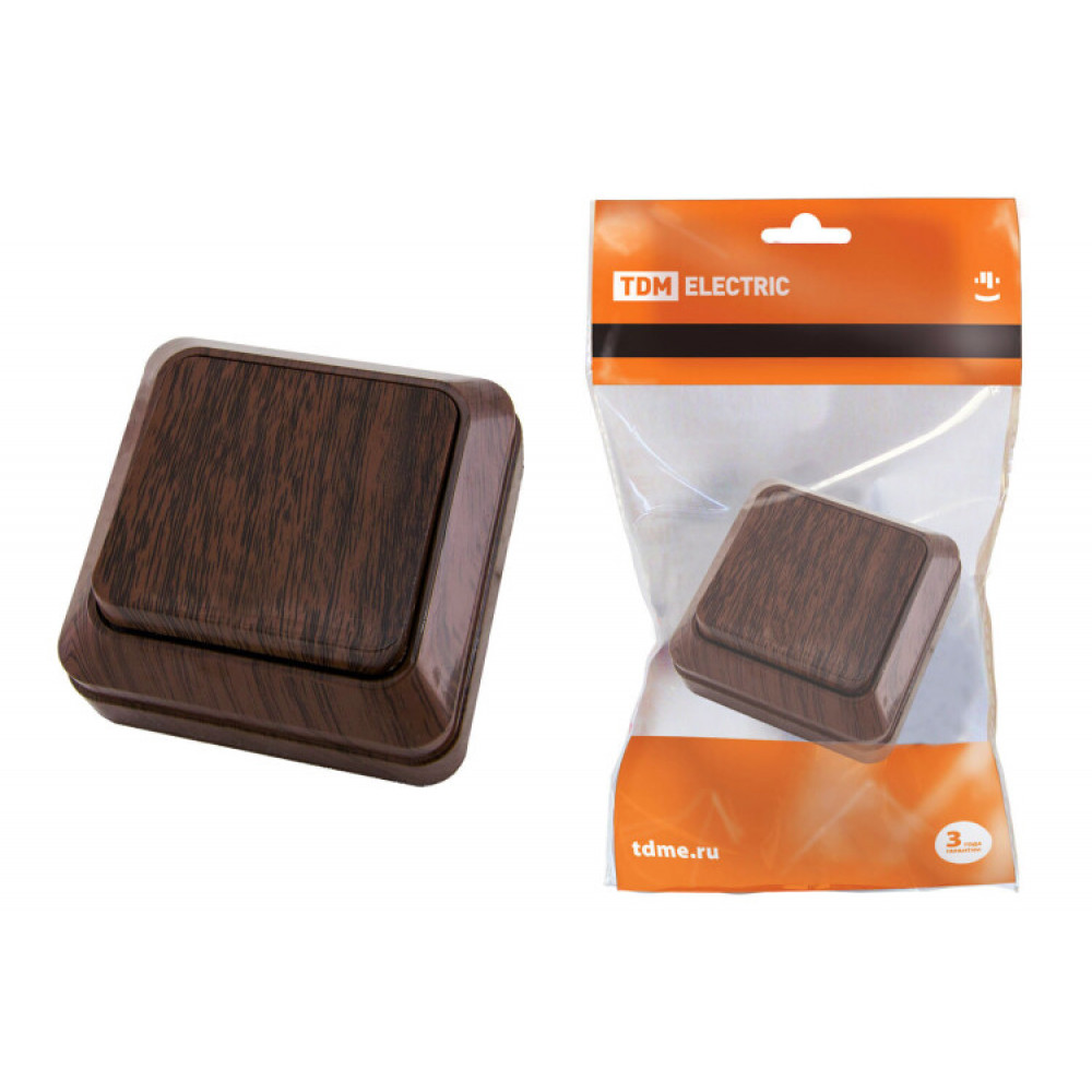 Описание Выключатель 1-кл. открытой установки IP20 10А, бук "Ладога" SQ1801-0027