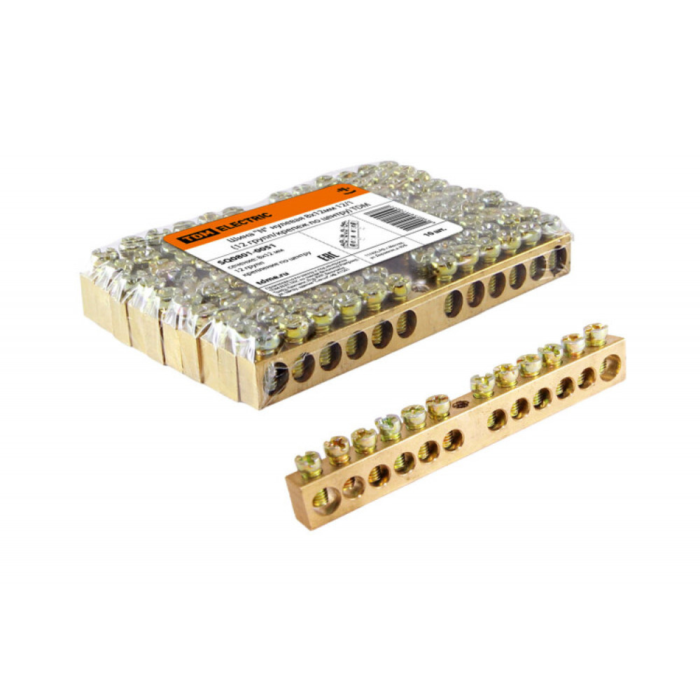 Шина "N" нулевая 8х12мм 12/1 (12 групп/крепеж по центру) SQ0801-0051, Блок клеммный и нулевая шина