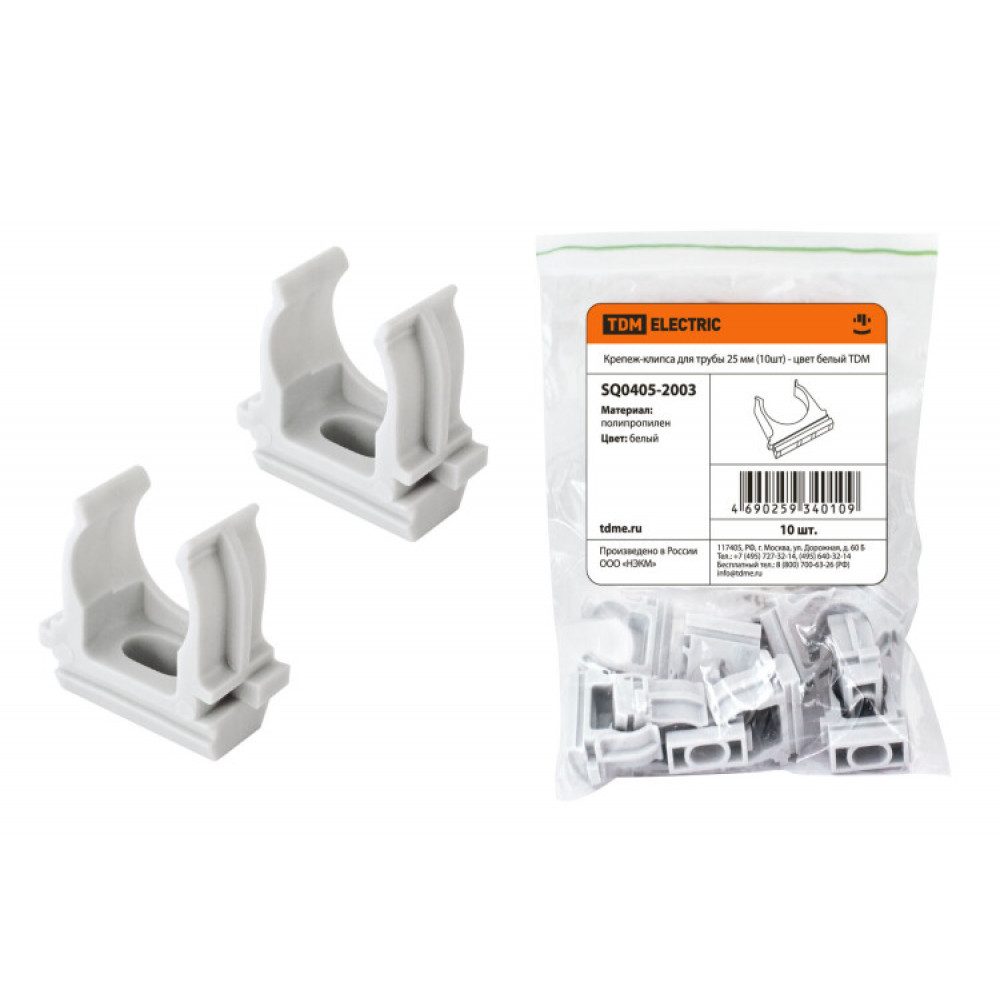 Крепеж-клипса для трубы 25 мм (10шт) - цвет белый SQ0405-2003, Труба и короб для прокладки кабеля