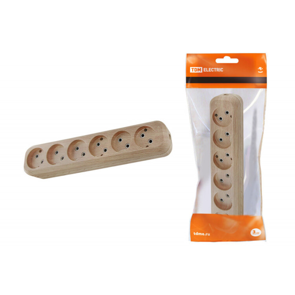 Колодка розеточная 6 гнезд 2П б/з 10А 250В "Эко" (сосна) SQ1806-0056, Удлинитель, сетевой фильтр