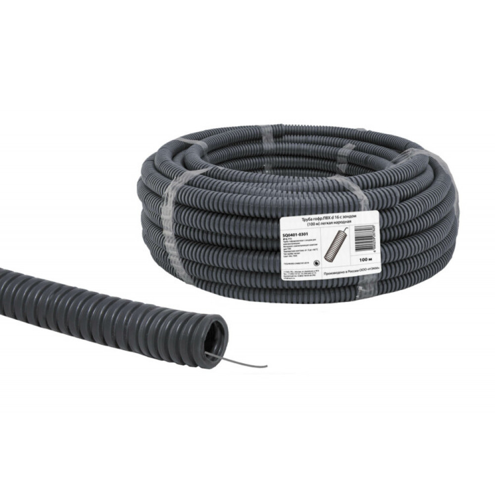 Описание Труба гофрированная ПВХ d 16 с зондом (100 м) легкая Народная SQ0401-0301