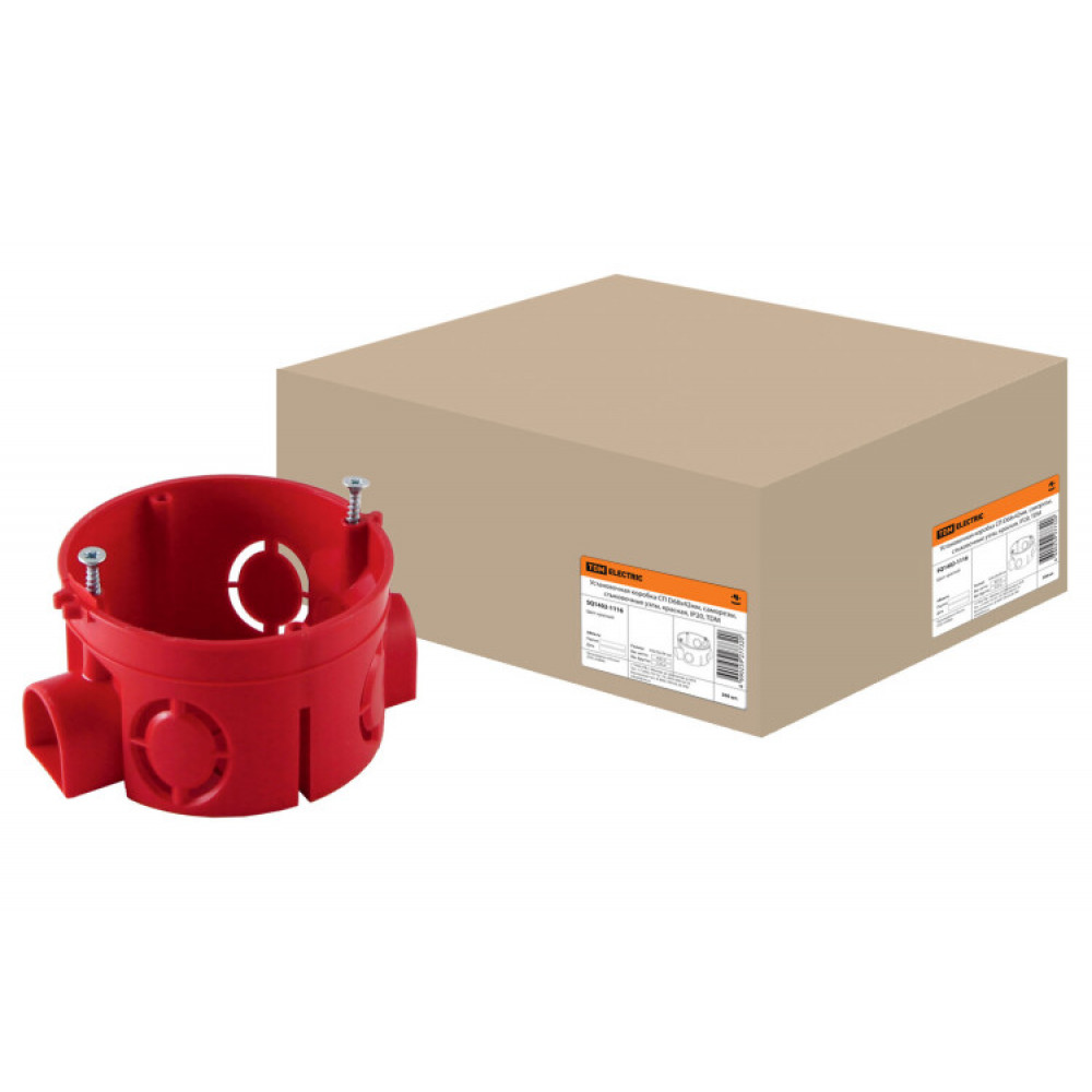 Установочная коробка СП D68х42мм, саморезы, стыковочные узлы, красная, IP20, SQ1402-1116, Коробка распределительная