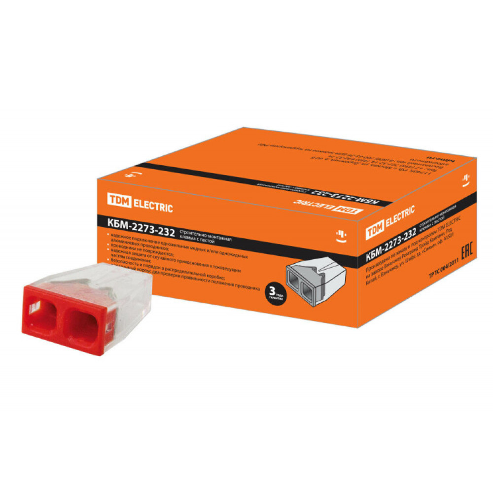 Строительно-монтажная клемма КБМ-2273-232 (2,5мм2) с пастой SQ0517-0111, Строительно-монтажная клемма и скрутка