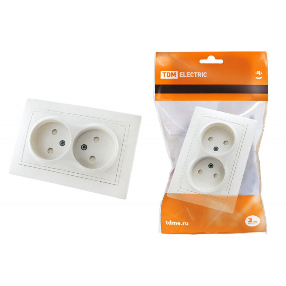 Описание Розетка двойная 2П с защ. шт. 10А 250В белая "Таймыр" SQ1814-0017