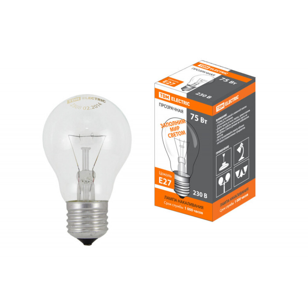 Описание Лампа накаливания общего назначения Б75 Вт-230 В-Е27 SQ0332-0037