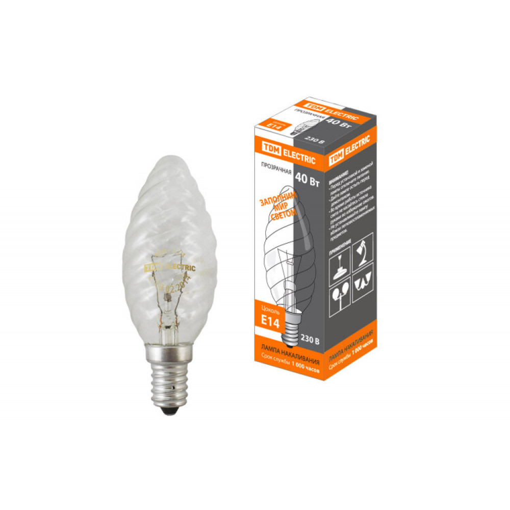 Описание Лампа накаливания "Витая свеча" прозрачная 40 Вт-230 В-Е14 SQ0332-0013