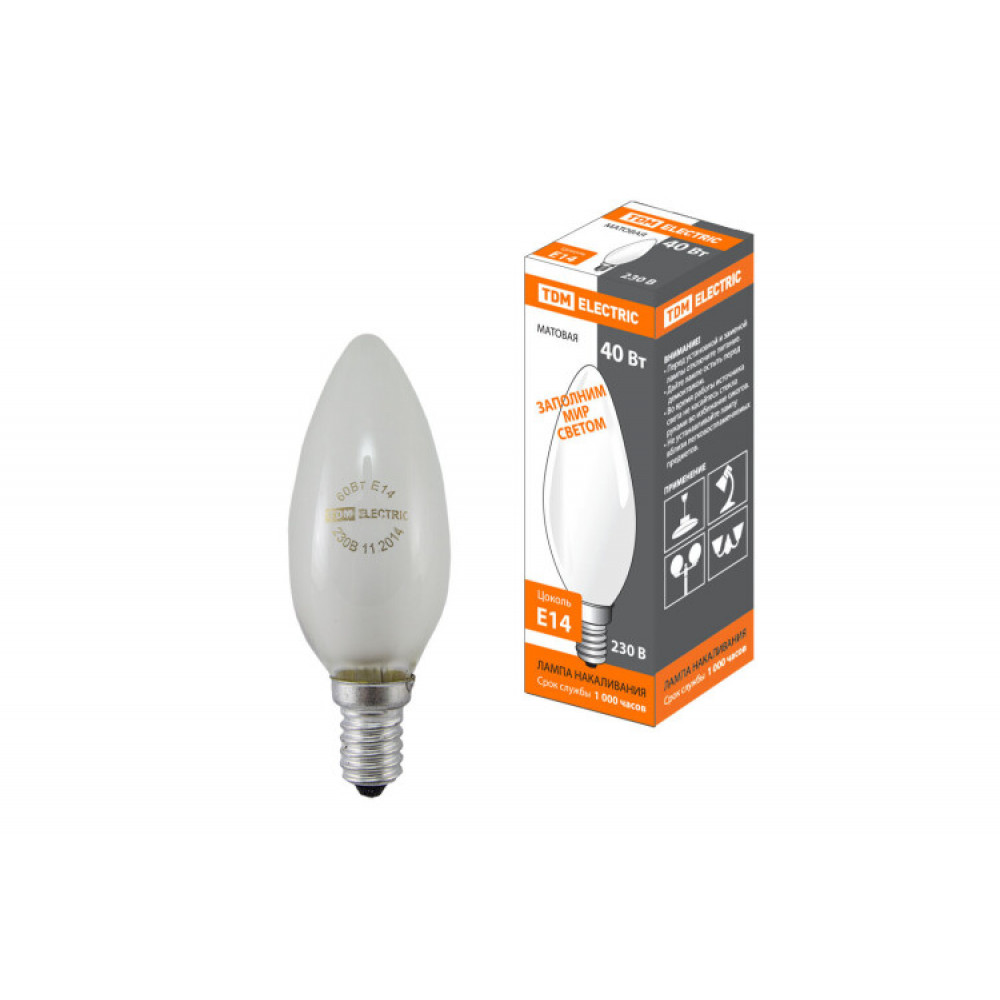 Описание Лампа накаливания "Свеча матовая" 40 Вт-230 В-Е14 SQ0332-0017