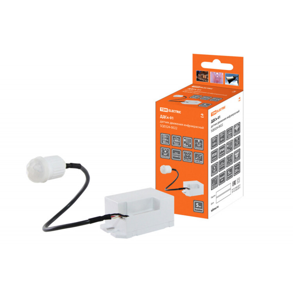 Описание Датчик движения скрытый ДДСк-01 800Вт, 5сек/8мин, 6м, 10/2000лк, 120(сб.)+360(св.)гр, IP20/IP44, SQ0324-0022