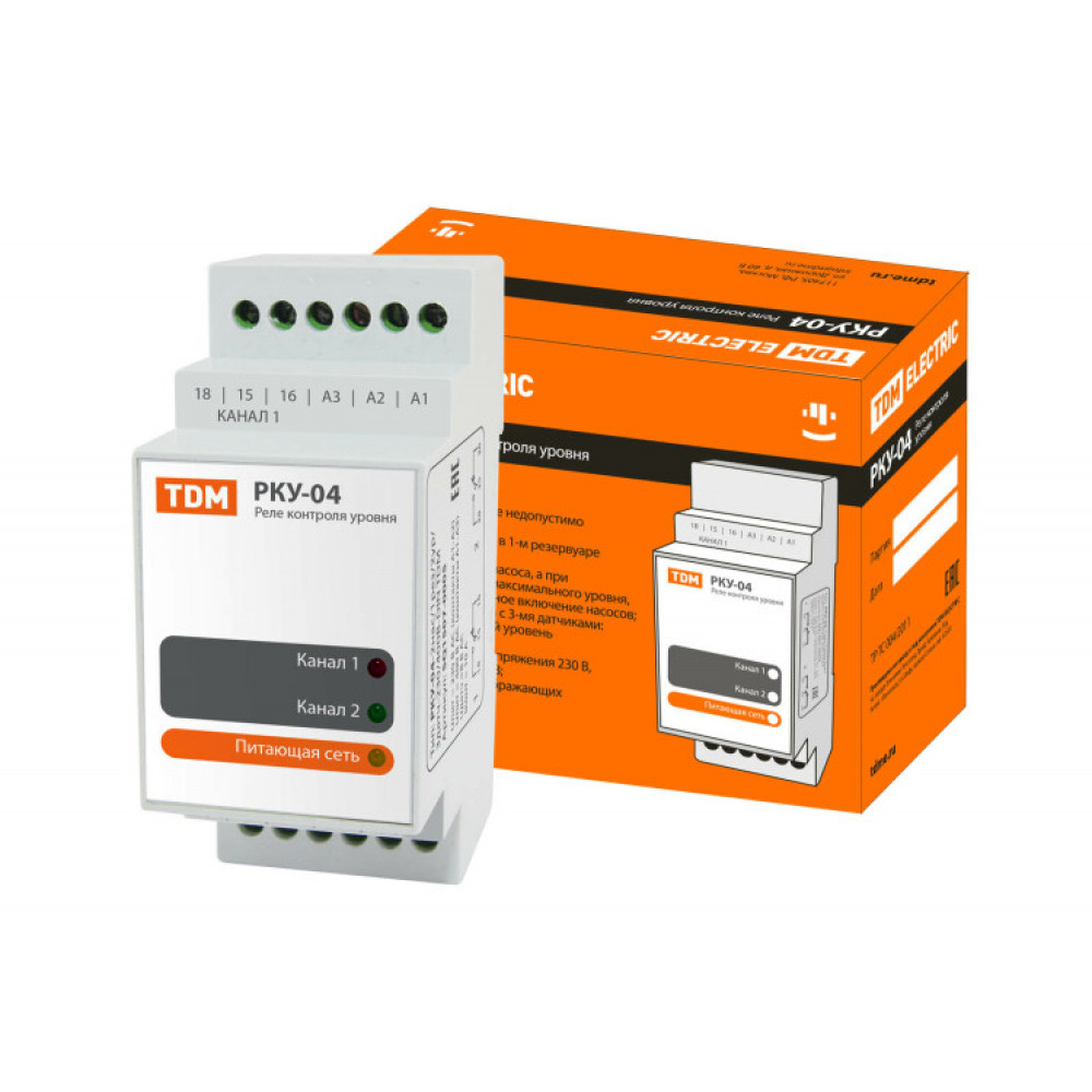 Описание Реле контроля уровня РКУ-04-2нас/1рез/2ур/3датч-230/400В-DIN (без датчиков) SQ1507-0005