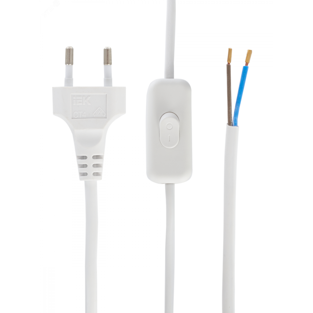 Описание Шнур УШ-1КВ опрессованный с выкл. 2м 2х0,75мм2 белый WUP20-02-K01