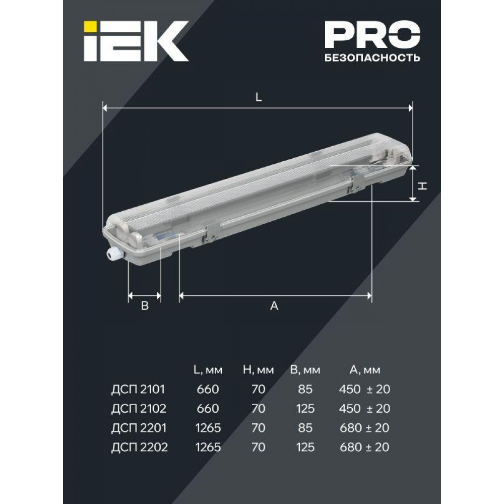 Описание Светильник ДСП 2101 под LED лампу 1хT8 600мм IP65 LDSP0-2101-1X060-K01